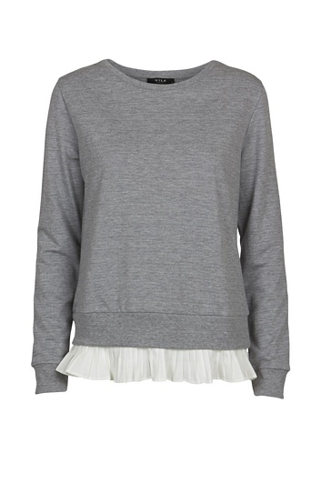 Ja ni har redan sett fina tröjor här där det sticker fram en kant nertill för att att få den rätta looken som är het den här säsongen. Den här coola tröjan från Vila med fin veckad skjortkant nertill är på väg in nu den här månaden och den kommer i fina ljusa nyanser, priset är 399 kr.