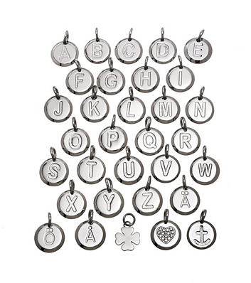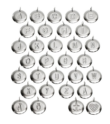 Nästa vecka kommer den efterlängtade leveransen av Edblads fantastisk fina serie med kedja och berlock som man köper styckvis av och kombinerar och mixar som man vill. Nu är jag väldigt nyfiken på: 1. vilken bokstav ni vill ha 2. viken storlek (liten Diameter 12 mm, höjd 2 mm eller stor Diameter 20 mm, höjd 2 mm) på berlocken ni vill ha. Lilla berlocken är till vänster här och stora till höger här. 3.vill ni ha stål eller rosé 4. vilken kedja gillar ni bäst: kulkedja eller tunn ringkedja (se armbanden nertill) 5. vill ni helst ha armband eller halsband