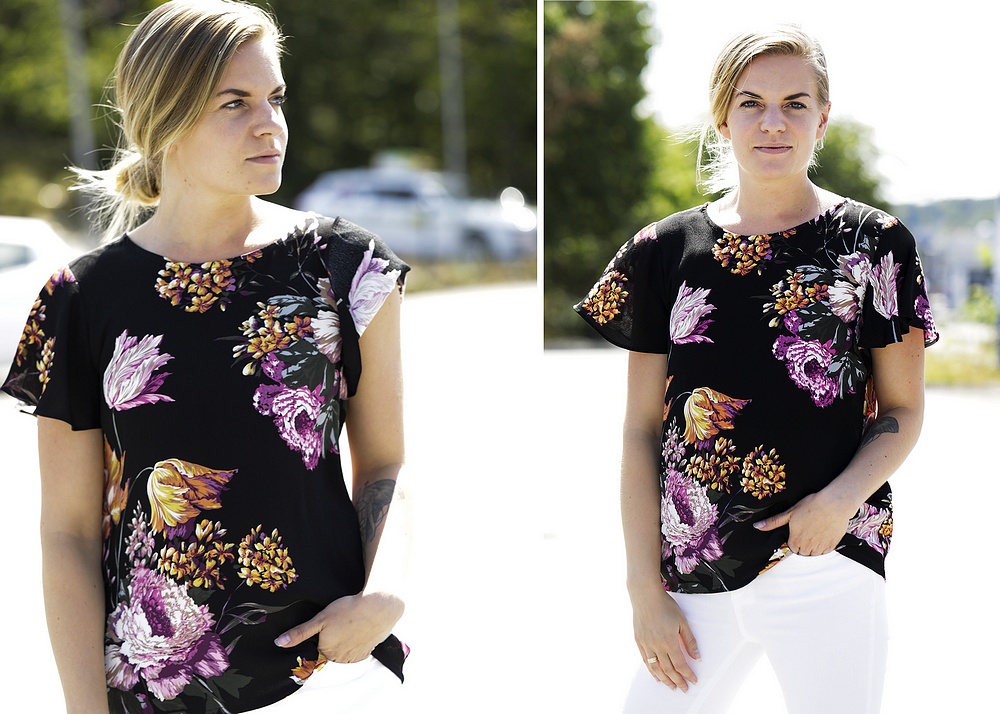 Idag kommer den här vackra kortärmade blus. Den är rak och härligt ledig i modellen! Snygg att matcha till ljusa jeans eller kjol/shorts för snygg stilren kontrast nu i sommaren.