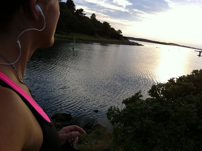 Latter" som har snygga detaljer i ryggen. Under har hon sport-bhn "