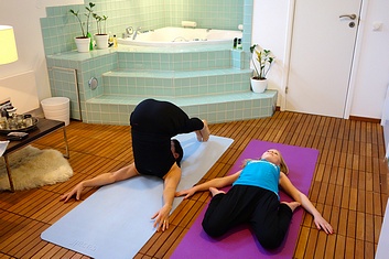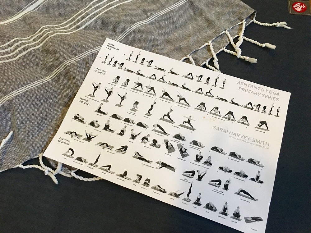 I dag blev det härligt yoga-pass här hemma tillsammans med dottern. Jag har ju börjat i ashtanga yoga nu i vår och har gått klart första introduktionskursen och nästa vecka ska jag börja i nivå 2. Min tanke är att jag ska köra detta regelbundet hemma och ibland ta pass på shalan för att hålla mig uppdaterad så jag får tips från lärare i de olika ställningarna/serierna. Dottern har en egen yoga-bok för barn som väljer sina övningarna i så kör vi halva passet tillsammans.