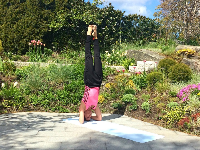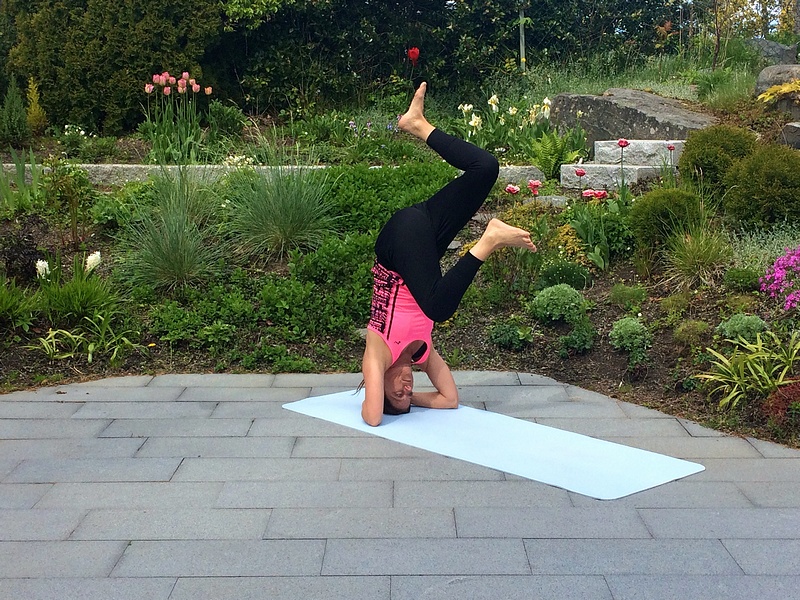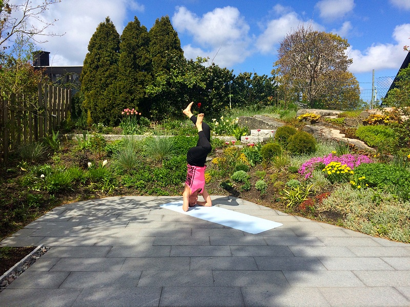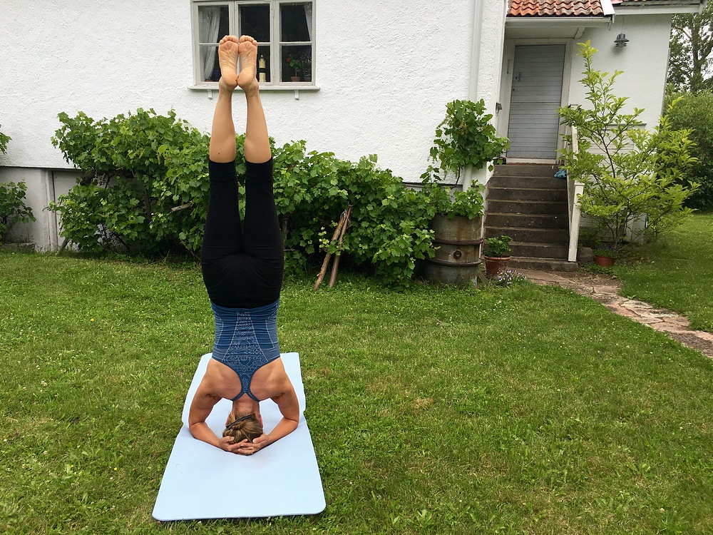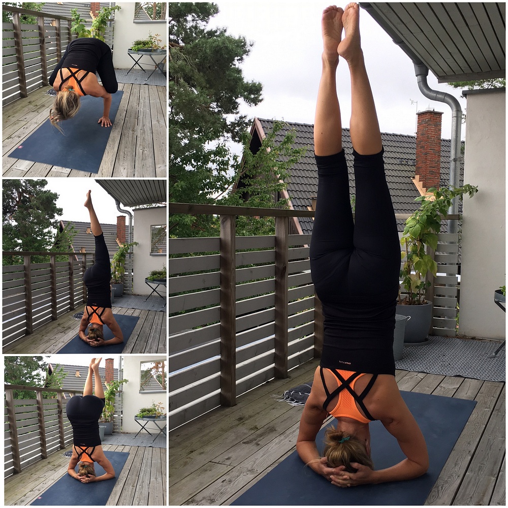 Idag tänkte jag att det skulle bli premiär utomhus för min yoga och nu på sistone så har jag börjat testa huvudstående... och börjat mot vägg men tänkte att det ska väl gå lätt även utomhus - NOT=) ha ha ha den här bjuder jag på, jag och Kalle skrattade så vi knappt kunde andas när vi skulle försöska fota det här;P