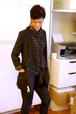 Så här ser jag ut idag, har på mig den fina lågkavajen från VILA (som jag bara äääälskar) randig top och sjalen från Pieces. Känns skönt när man frå en ny stil med hjälp av bara några få nya plagg, den här kavajen lär jag bo i tror jag. Jag är lite suddig idag också men men det är ju måndag så man är väl inte helt skarp än =)