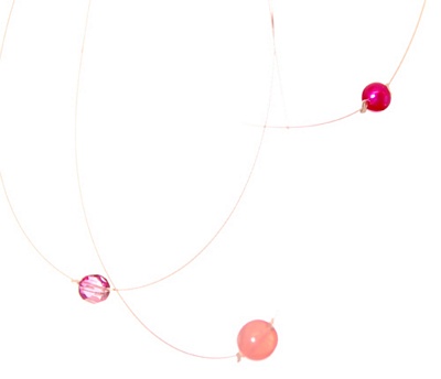 Jag tänkte bli klar med lite olika förslag på "Rosa-bandet"-halsband sen får ni alla vara med och säga villken modell som ska bli den som vi säljer på Mandel (halva summan går då till cancerfonden).