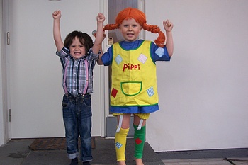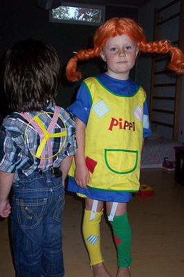 Ha ha ha så här såg barnen ut när jag lämnade dom på dagis i dag.... temat på maskeraden var ju "Astrid Lindgren" så Pippi och Karlsson på taket blev det alltså.