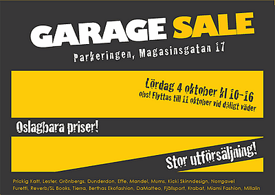 Vi har väntat och hoppats på att få bättre väderprognoser för lördagen men utan resultat. Vi måste alltså tyvärr flytta fram vår garage sale en vecka till den 11:e oktober istället. Snälla meddela alla ni känner som väntat på denna dag att det blir framflyttat en vecka - ingen garage sale nu på lördag alltså =( Håll tummarna för att det blir bättre väder den 11:e oktober istället!
