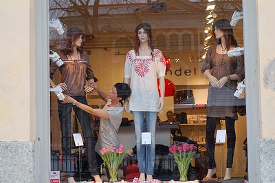 I dag är det mycket lugnare än igår så jag har precis skyltat om skyltfönstret med allt nytt som kommit in. Tunikan i mitten sprang ju iväg igår så nu det kommer påfyllning av den innan helgen ;)