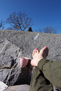 Total lycka - äntligen får jag njuta av vårsolen när jag är ledig!!! Först ska jag dämpa det dåliga samvetet och dra på jogginsgskorna och få upp flåset och sen blir det njutning på högsta nivå i en skön solstol... Hoppas ni har det bra på jobbet idag ;P