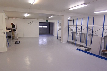 Vi startade ju som sagt webshoppen i september 2008 och då var lager och kontor på övervåningen av butikslokalen inne i stan. Snabbt märkte vi att vi behövde köpa in mer varor och behövde därmed både mer plats och mer personal. Kalle började söka lagerlokal och hittade stället som vi nu sitter i som ligger supermysigt i ett villaområde 5 minuter utanför Göteborg. Ännu ett målande-och piffande-projekt drog igång med att få fint på nya stället och i mars månad i år så flyttade hela webshoppen till nya lagret. Det är även här som fotostudion är där jag och Evelina plåtas varje morgon av Kalle.