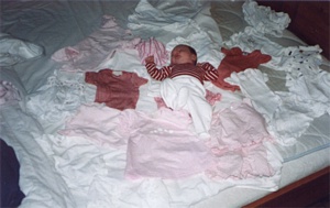 Våren 2003 föds vår dotter och jag försvinner in i blöj-och-amningsvärlden =P Jag var mammaledig hela året men åkte till Köpenhamn på modemässan och då fick lilltjejen hänga med så det blev en annorlunda mässhelg =) Det var en lugnare period i butiken det här året och jag var väl inte helt närvarande eftersom jag var helt inne i den nya mamma-världen... Till hösten fick vi dock höra att lokalen bredvid oss (Prickig Katts gamla) skulle bli ledig och den var ju bra mycket större än den vi hade - typ fyra gånger större om man räknar med övervåningen... Nu började tankarna snurra på om vi kunde fixa detta trots att jag var hemma och var mammaledig och Kalle jobbade heltid på it-företag. Vi bestämde oss för att köra full fart framåt så vi tog lokalen... fortsättning kommer i morgon =)