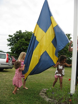 I dag firar vi Victoriadagen här på Öland så nu på morgonen hissades flaggan här till barnens förtjusning. Det är lite sol som tittar fram så vi ska packa picknick och åka till stranden snart, i eftemidag blir det golf... har inte spelat sedan förra sommaren så vi får väl se hur det går =P