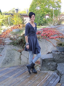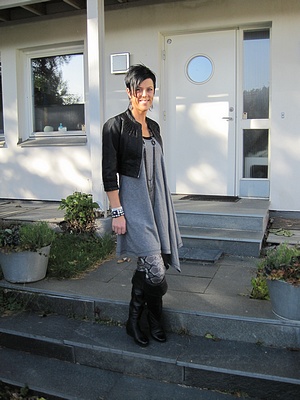 Har på mig "snake"-leggings, "zipper dress", "tapir"-jacket och halsbandet "now roya". I dag inviger jag även mina nya stövlar från Shoebiz - såååå sköna...
