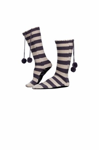 Nu när höstkylan är här vill man ju gärna ha gosiga sockar hemma och mysa i... Dessa finns för omgående leverans från ONLY, priset är 159 kr och de kommer i lila/vitt, grått/vit och svart/vitt. Undersidan är förstärkt så man inte sliter hål på dom efter en vecka ;P Tänk bort att de är fånigt uppdragna på bilden, dessa ska man ju kasa ner så de sitter snyggare på ;P Gillar ni dom? Var med och påverka nu om jag ska ta in dom eller ej...