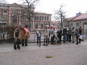 Så här ser det ut just nu utanför Mandel =) Tre fina ardennerhästar går omkring här och fina små grå vättar skapar en mysig stämning... doften av glögg, pepparkakor, apelsin och nejlikor sprider en härlig julstämning även inne i butiken ;P