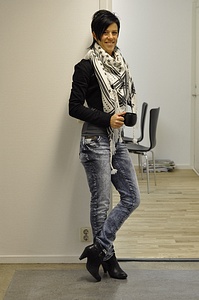 I dag har jag på mig "joti ss"-toppen (rekomenderas verkligen), nya jeansen som kommer upp idag "coral debbie" , "short army jacket" och sköna storsjalen "soth shawl"
