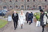 Ja igår hörde ni inte mycket av mig här på bloggen ;P Min bästa vän gifte sig igår och det var ett bröllop för närmsta familjen så det skulle hållas hemligt därav att jag inte skrev något mer om vad jag skulle göra igår ;P Kalle fotade och jag var assistent hela förmidagen och hjälpte till med piffande och påklädning. I kyrkan filmade jag och stod uppklämd mellan två bänkrader tillsammans med hon som spelade orgel ;P Sååå vackert bröllop och mysig midag efteråt med fina kärleksfulla tal =D Som ni ser på bilden här så var det ett och annat risgryn som kastades... till barnens stora glädje ;P