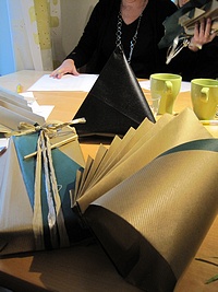 Nu har jag och Julia (som jobbar i butiken) gått en kurs här på morgonen i presentinslagning. Massa finfina tips på hur man snyggt kan göra paketen lite mer personliga. Tyvärr är pappret som vi hade här på bilderna ruskigt trist så våra stackars paket ser inte så kul ut här ;P Inspirerande nu inför julhandeln hur man med små bra knep kan göra paketen lite roligare, vi brukar alltid ha lite extra dekorationer til jul såsom glitter, små kulor, kvistar m.m just för att våra paket ska kännas lite mer personliga.