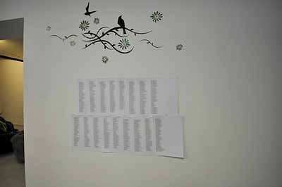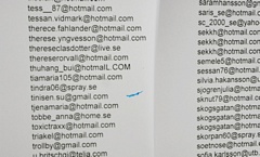 Ha ha ha så här gick det alltså till när vi skulle dra vinnarna i tävlingen... Jag satt med förbundna ögon och Evelina och Jacob snurrade runt stolen en miljard varv (kändes det som ;P) och därefter skulle jag vingla mig bort till alla namnlistor och där peka med bläckpennan på vinnarna!