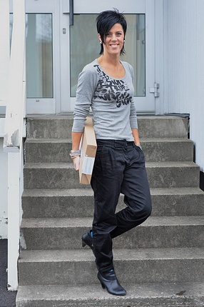 I dag har jag på mig "chen chinos", "massive true-passion"-toppen och hogan-örhängena.