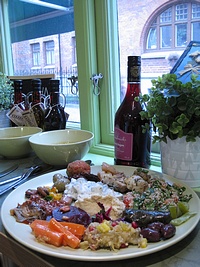 Nu har jag varit på ett helt underbart lunchställe i mysiga Haga här i Göteborg. "Delikatess & Catering" heter stället och de har en fantstiskt god och fräsch plocktallrik med underbara smårätter. De säljer även massa fina ekologiska varor så jag passade på att köpa lite godsaker till lördag då vi är bortbjudna på glöggkväll till grannarna ;)