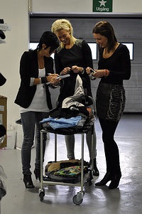 Julia har på sig nya kjolen:"penn skirt",surface-leggings och "officiel"-toppen. Evelina har på sig "cleave 5 pocket" (snow), "officiell"-toppen och "doctor tunic" . Jag har på mig nya kavajen som kommer upp idag "suna jacket" , "officiell"-linnet, "net"-linnet (nätbrynjan) och favvojeanslegingsen "cleave 5 pocket rivet"