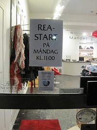 Nu är jag färdig med förberedelserna med rean i butiken i stan. Har hängt om alla plagg som är med på rean och de som är nyinkomna och (därmed till ordinarie pris) så allt ska vara lätt att se i butiken ;) Passade även på att lägga en extra timme med att ta bort all juldekoration i fönstret och skylta om allt så det verkligen syns att rean startar nu.