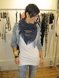 Har på mig "funky fair" (sååå snygg jeanstvätt tycker jag!), "abbygail"-tröjan och "hogan"-örhängen och såklart "foxy slim"-armbandet (som inte syns på bilden ;P).