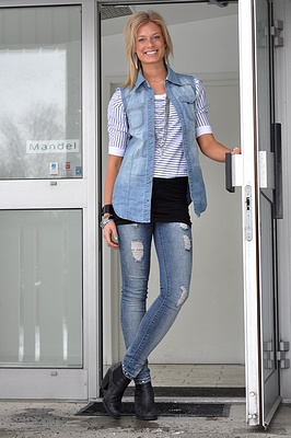 Här kommer en dagens på Evelina i den nya coola jeansskjortan med avklippta ärmar som kommer in i dag = sååååååå snygg!!! Hon har på sig "duffy stud"-jeansen, "oficiell"-linnet, toppen "lotta" och nya "pam" som fotas i dag =)
