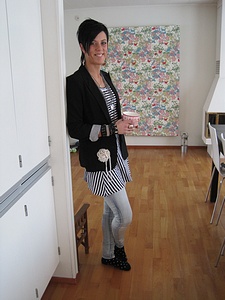 Jag har på mig "raw"-leggings, nya "jane dress" "fumo"-kavaj och "foxy"-armbandet tillsammans med massa Hello Kitty-smycken såklart ;P
