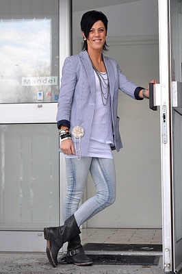 Då var man tillbaka på jobbet igen efter en snabb visit på modemässan i Köpenhman =) Har fått med mig en liten förkylning hem så rösten är inte vad den borde vara just nu ;P Jag har blivit helt kär i den här nya kavajen som jag har på mig i dag, det är en smalrandig (blå/vit) modell som är lite längre men fortfarande nätt i modellen, den kommer upp i dag på webshoppen så var redo då =) Julia är ledig i dag så när jag är färdigfotat här och alla texter är klara på webshoppen så åker jag ner och öppnar butiken till 11.