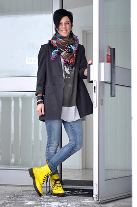 Jag har på mig "funky fair", "zan"-toppen, "fumo" blazer och sjalen "brumme".