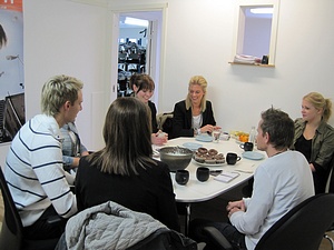 I dag har vi haft frukostmötet eftersom vi är på modemässan på fredag den här veckan =) Det blev fullt hus nu när vi fått tillökning i personalen så 8 stycken var vi idag ;P Tårta, presenter och smarriga chokladmuffins blev det dagen till ära också då vi passade på att fira Camilla som fyller nästa vecka och jag som fyller på söndag ;P Snart får ni massa outfitbilder här också, både jag och Evelina har på oss de nya boyfriendjeansen som kommer upp idag på webshoppen...