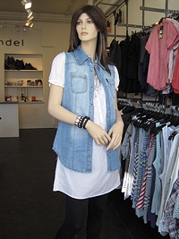 Dockan till höger har på sig tunikan "aronia", jeansvästen/skjortan "pam" och leggingsen "edita". Dockan med kappan har på sig "mac coat",oversizetoppen "punkture" och klever jeans. Dockan bredvid har på sig OBJECT-toppen "mayay", jeansjackan "ally" och "edita"-leggings.