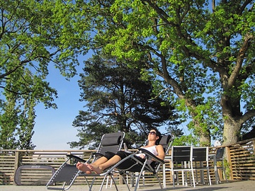 Här ligger jag nu så länge solen är framme... Det är alltid lite lurigare att jobba på en lördag när solen skiner, dels är det mindre folk på stan och dels vill man ju själv hinna få njuta lite av dessa efterlängtade solstrålar ;p Jag har i alla fall fått sitta i solen sedan jag kom hem från jobbet (kl, 17) -såååå skönt. Ha en härlig lördagkväll nu, vi ska snart börja fixa här hemma inför dotterns födelsedagskalas i morgon ;)