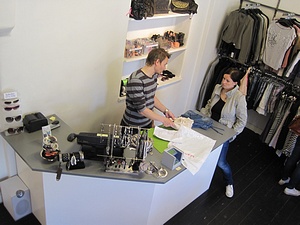 Kalle har fått lösa av mig i butiken så jag kunde få i mig lunch och kila och pudra näsan ;P Lotta är sjuk sådärför fick Kalle glida in bakom kassan, han kände sig väl sådär bekväm kan jag säga...