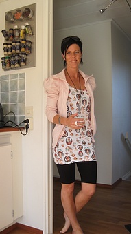 Här är linnet jag visade er tidigare =) På mig som är kort (164 cm) funkar det perfekt även till vanliga cykelbyxor/leggings. Jag tog det med vitt botten och massa änglar som bilder olika mönster, lite svårt att se exakt här hur det ser ut kanske, ni får se mer på webshoppen i morgon =) Har även på mig nya sköna "delly flower sweat" som redan nästan är slutsåld över dagen, fler väntas in om några dagar ;)