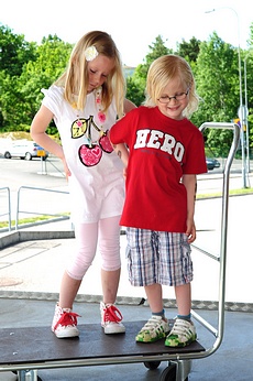 Evelina har på sig "Officiel"-linnet, nya linnet "mary" och "funky everyone". Emmelie har på sig "beza dress" och "hopy bolero".