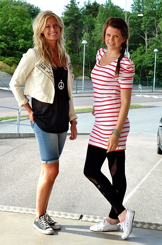 Här får ni en dagens på Evelina och Emmelie från webshopen. Evelina har på sig linnet "Nahlin", jackan "Top Short Jacket" och "Cleave 5 Pocket Shorts". Emmelie har på sig "Denna dress", supercoola leggingsen "Sub Contrast" och armbandet "Nosy Bracelet".