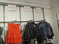 Nu är jag i butiken i stan där jag varit de senaste tre timmarna och fixat och piffat med alltifrån byte av glödlampor i taket till upppackning av höstvaror... men framförallt så är det fixat och klart för att det i morgon är starten för sista rea-köret = 50 % i butiken! På webshoppen är det redan i kväll halva priset som gäller (på ordinarie pris) så sätt igång och gör sista reafynden nu =) De kunder som lagt ordrar ikväll på reaplagg kommer vi att ändra priset på så att ni också får 50% (om ni hade köpt något som det endast var 30% på). ... nu ska jag pallra mig hemåt och jag håller tummarna hårt för att jag inte fått p-bot för jag blev kvar lite längre än jag tänkt mig ;P