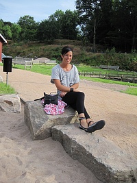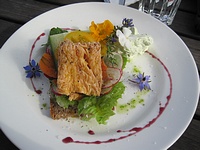 Vi åkte till mysiga Gunnebo Slott i eftermidags.. Barnen åt glass och jag åt en underbar laxsmörgås som serverades så vackert dekorerad med blommor från deras fantastiska trädgård. Gunnebo Slott jobbar mycket med att bevara de vackra slottsträdgårdarna och framförallt då deras ekologiska örtträdgårdar som är såååå stora så deras luncher är helt fantastiska - rekommenderas verkligen om ni bor i Göteborg med omnejd =) Vi avslutade dagen med kvällsdopp i sjön som ligger nära. Jag invigde nya tishan " dalia" som kom in i går, jag tog den i grått och hade mina "edita"-leggings till =)