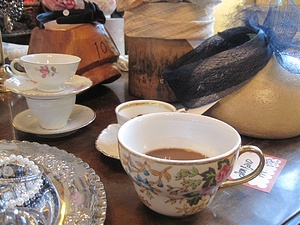 Nu har jag varit och tagit en kaffe med Malin på Prickig Katt i deras mysiga butik (spana in hennes hattar och "stockar" i bakgrunden här). Hon håller i modevisningen som vi ska ha på lördag så jag har varit där med kläderna som ska vara med från Mandel. Vi får hålla tummarna nu för att regnet håller sig borta på lördag så vi kan ha visningen alla tre gånger som är planerat =)