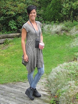 En kaffe hemma innan jag och barnen åker och storhandlar och fixar lite ärenden. Jag har på mig sköna jeansleggingsen "funky heavy washed", tunikan "chrisper" och två kedjor av halsbandet "elegant".