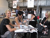 I dag blev det väldigt långa inköpsmöten på barnavdelningen och jag har köpt in såååååå mycket snyggt till både pojk och flick till våren =) Har även spanat på ett till barnmärke som ev. kan bli intressant till våren. Camilla och Evelina har nog några kilometer i dag här på mässan medans vi suttit i möten... Nu är vi på hotellrummet för att ta en kort paus, har duschat fötterna i iskallt vatten så nu börjar man kvickna till och blir redo för att gå ut;P
