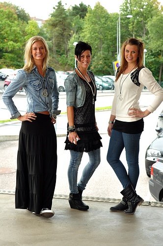 I dag har Evelina på sig långkjolen "tess" och underbara jeansskjortan "kanzi". Jag har på mig nya tunikan/klänningen "ovalia" (rekommenderas verkligen, fler kommer i eftermidag), jeansleggingsen "funky heavy washed" och "denim bolero". Emmelie har på sig "cleave 5 p 139", "oficiel"-linnet och fina tröjan "josef".