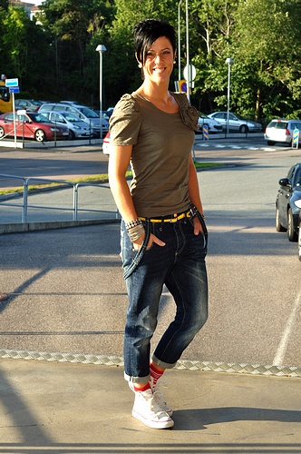 Jag har på mig underbara "bea" harems-jeansen (som ni bara inte får missa), sköna toppen "delia", "hogan"-örhängen, "sono" och "nosy"-armbandet