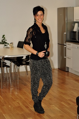 Jag har på mig underbara "rico"-byxorna, "officiel"-linne, nya spetsskjortan "lacey long shirt" och smyckena "jill", "foxy slim" och bisse"-örhänget.