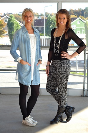 Evelina har "New Nikoline Tights", "Jams"-toppen och snygga skjortan "Remorse". Emmelie har "Rico Pants", "Basic Tulle Party Top", under har hon nya linnet "Femme Long Tank Top" och smyckena "Jaime" och "Kit Necklace".