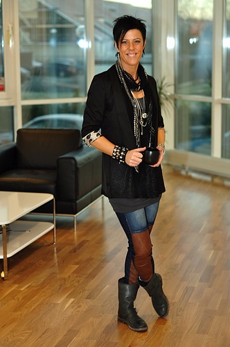 I dag har jag på mig "funky unika" (som kommer in igen), "officiel"-linne (såklart ;P), "fancy"linnet och underbara kavajen " saha". I dag kör jag på nya favvosjalen "rebecca" som kommer rädda många outfits känner jag, rekommenderas verkligen!!!