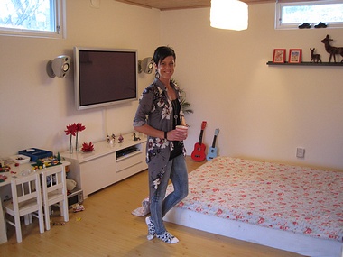 Så här blev lekrummet som vi målat om och grejat med de senaste veckorna (tyvärr är ju dessa inlägg borta från bloggen nu pga crashen...). Nu är vi snart färdiga, Kalle håller på att montera en bokhylla så vi ska få in alla spel och böcker till barnen där. Om två timmar blir det födelsedagskalas här hemma med släkten så nu ska vi fixa och greja för att få allt klart.