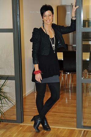 Jag har på mig "telyn zipper", "officiel"-linnet, "loral top" och favvo-spetsboleron "beauty" som jag verkligen rekommenderar nu till alla julfester och nyårsafton. Smyckena för dagen är underbara armbandet "kajsa", "elegant"-kedjorna (missa inte) och örhänget "nups".